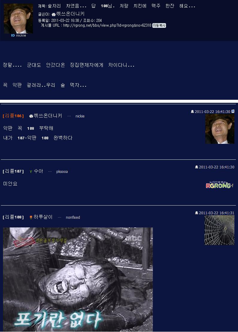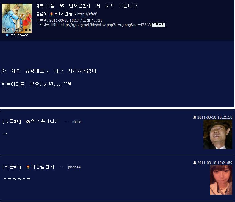 | 58 | ºñ°ø°³ ¼Õ´Ô ¡¦ 2011-03-22 22:43:03 | ||