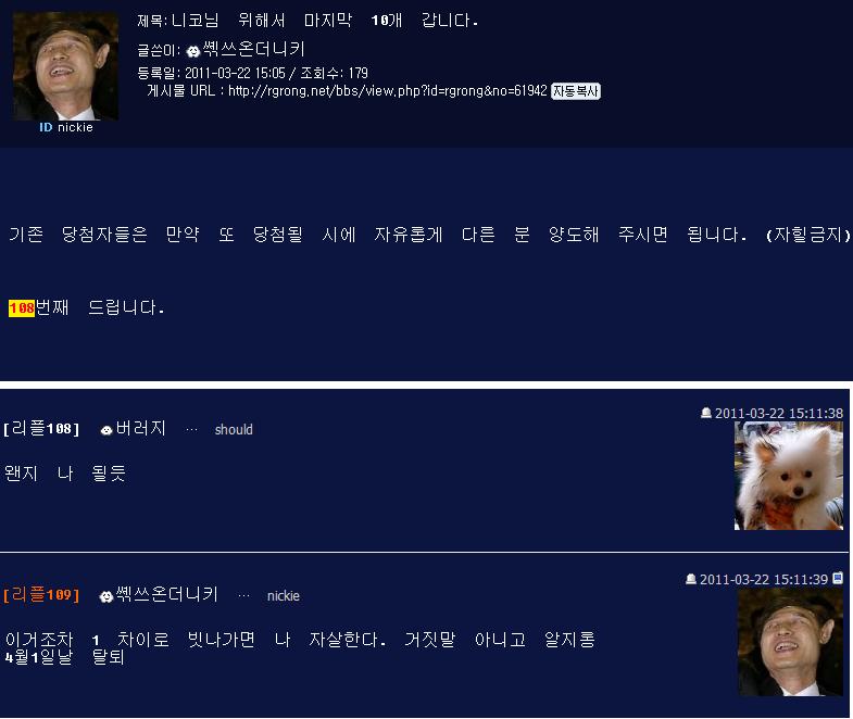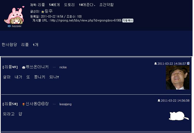 | 60 | ºñ°ø°³ ¼Õ´Ô ¡¦ 2011-03-22 22:56:10 | ||